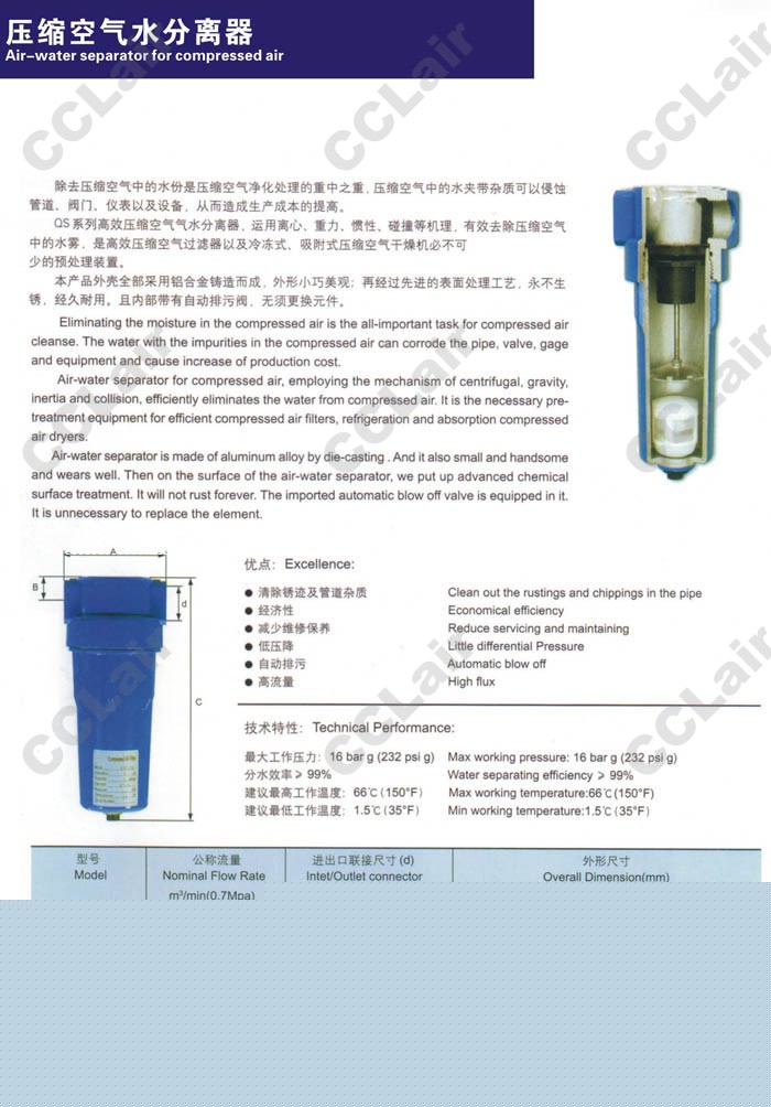 QS015,QS025,QS037,QS037A,QS055,QS087,QS140,QS140A,压缩空气水分离器