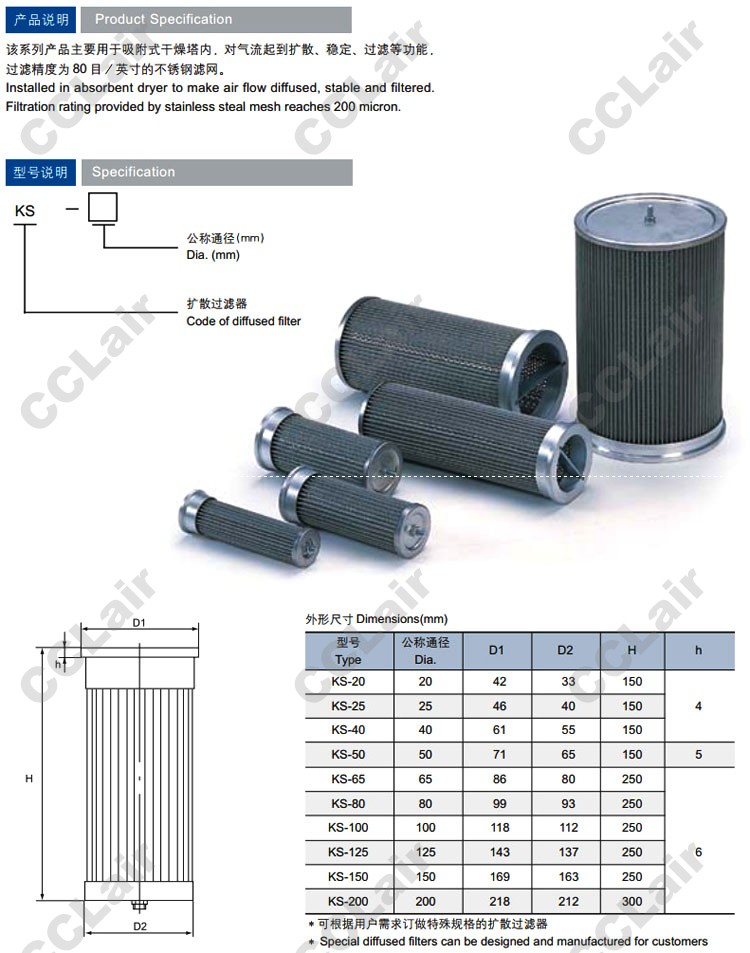 KS-20,KS-25,KS-40,KS-50,KS-65,KS-80,KS-100,KS-125,KS-150,KS-200,扩散过滤器