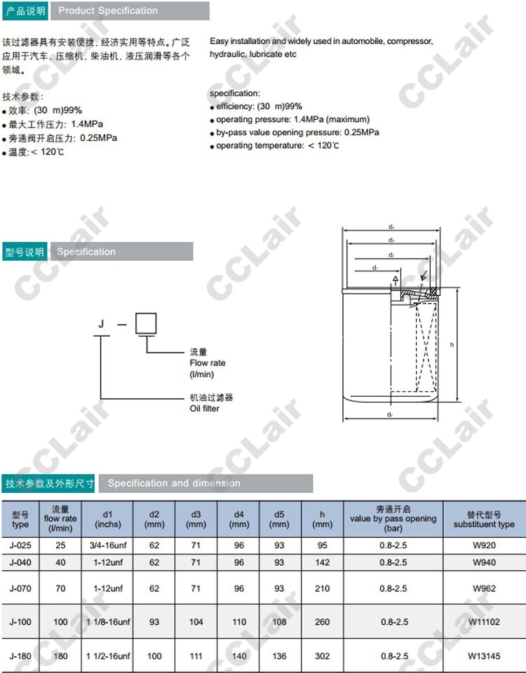 J-025,J-040,J-070,J-100,J-180,旋转式机油过滤器
