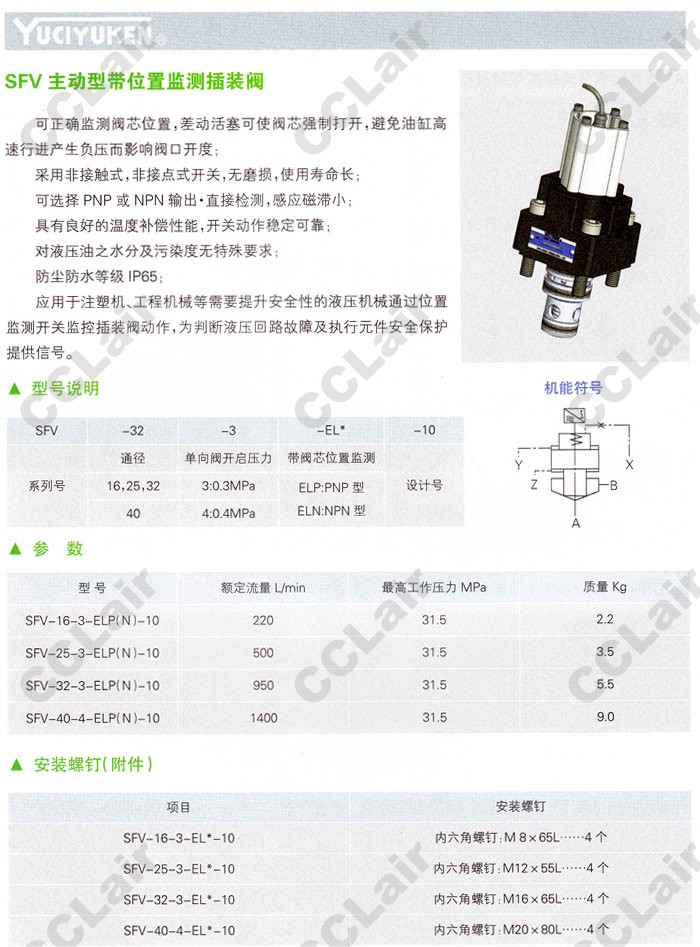 SFV-16,SFV-25,SFV-32,SFV-40,SFV-16-3-ELP-10,SFV-25-3-ENP-10,SFV-40-4-ENP-10,带位置监测插装阀
