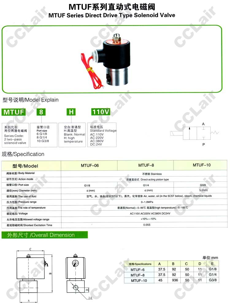 MTUF-06,MTUF-08,MTUF-10,直动式电磁阀