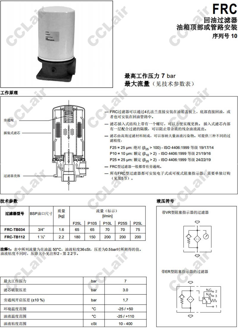 FRC-TB034-F25S/10N-B,FRC-TB112-F25L/10N-B,FRC-TB034-P10S/10V-B,FRC-TB112-P10L/10V-B,FRC-TB034-P25S/10N-B,回油过滤器