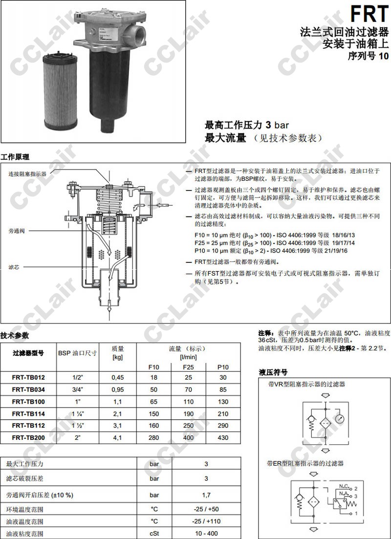 FRT-TB012-F10S/10N-B,FRT-TB034-F25S/10N-B,FRT-TB100-P10S/10N-B,FRT-TB114-F10S/10V-B,FRT-TB112-F25S/10V-B,回油过滤器