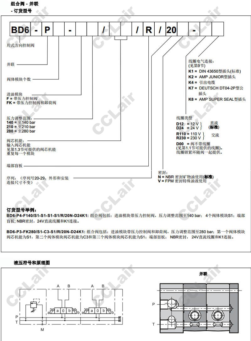 BD6-P2-F140/S1-S1/R/20N-D12K1,BD6-P3-F140/S3-S1-S1/R/20N-D12K1,BD6-P5-F210/S1-S1-S1-S3-SA1/R/20N-D12K1,片式方向控制阀