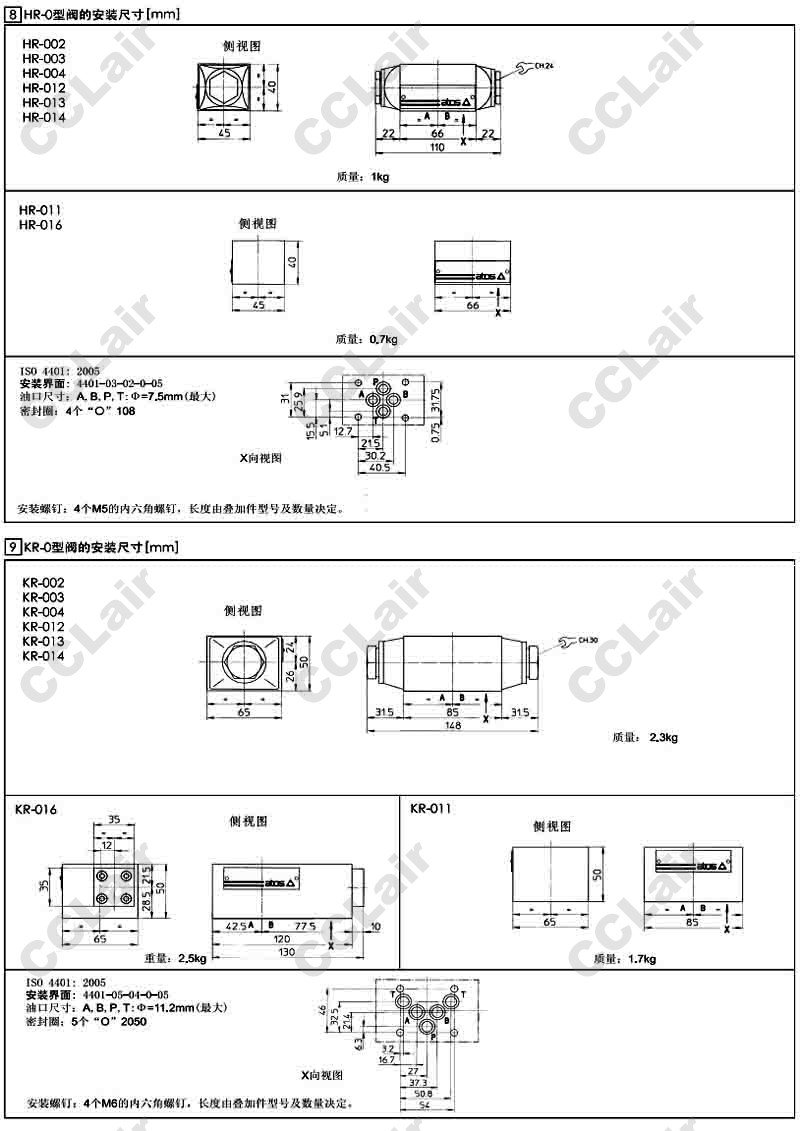 KR-002/2/D,KR-003/2/D,KR-004/2/D,KR-011/2/D,KR-016/2/D,KR-012/2/D,KR-013/2/D,KR-014/2/D,阿托斯ATOS叠加式单向阀