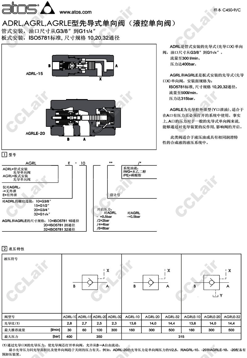 AGRL-10,AGRL-20,AGRL-32,AGRL-10/2,AGRL-32/4,AGRL-10/4,AGRL-20/2,阿托斯ATOS先导式单向阀