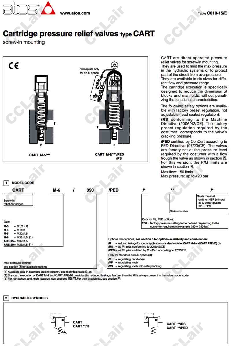 CART M-3,CART M-4,CART M-5,CART M-6,CART ARE-15,CART ARE-20,CART M-3/420/PED,阿托斯ATOS直动式溢流阀