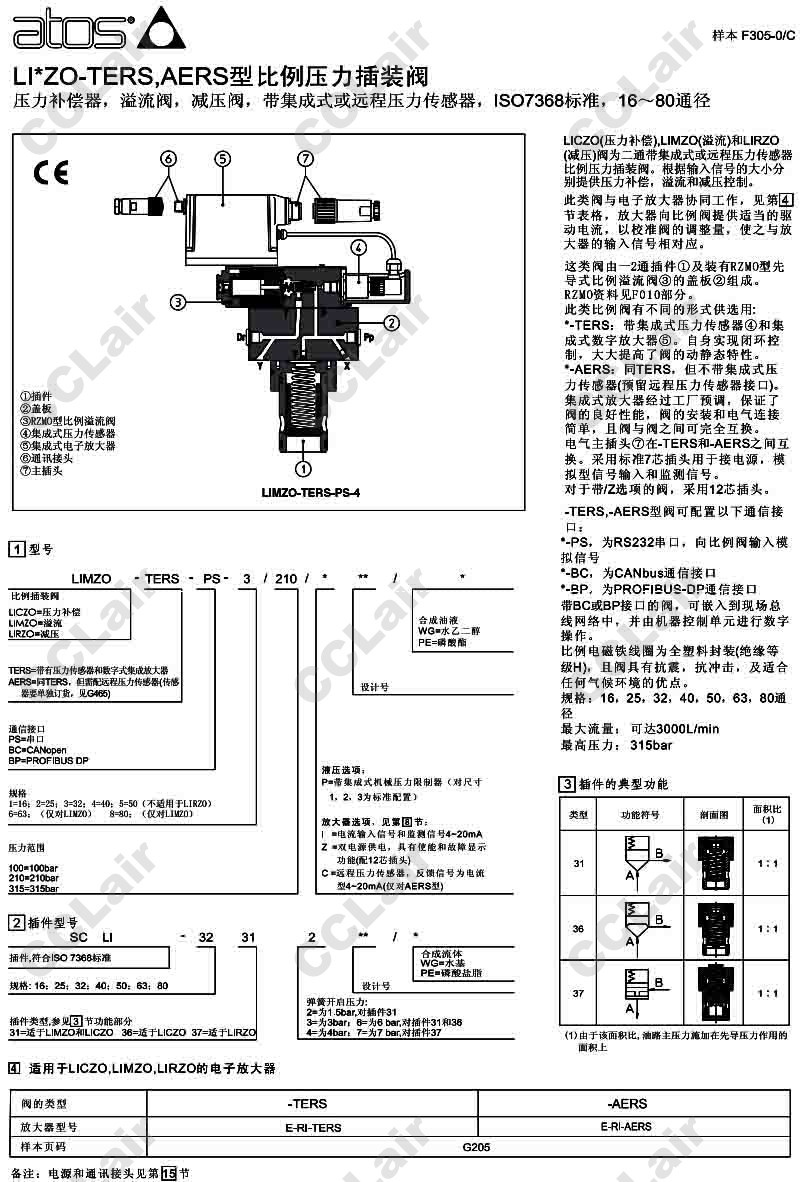 LIMZO-TERS,LIMZO-AERS,LIRZO-AERS-PS-4/210,LIMZO-TERS-BC-5/315,阿托斯ATOS比例压力插装阀