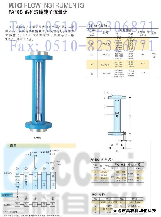 FA10S-15,FA10S-25,FA10S-40,FA10S-50,玻璃转子流量计