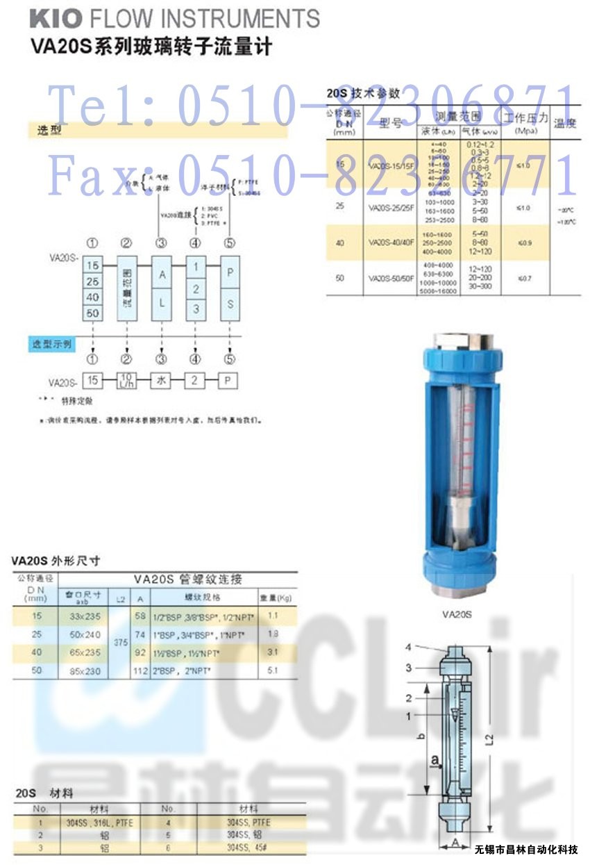 VA20S-15/15F,VA20S-25/25F玻璃转子流量计