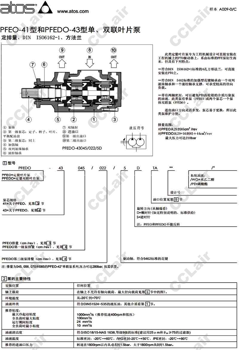 PFEDO-43,PFEO-41,PFEDO-43037/016,PFEDO-43070/044,PFEO-41070/044,PFEO-41056/022,阿托斯ATOS定量双联叶片泵