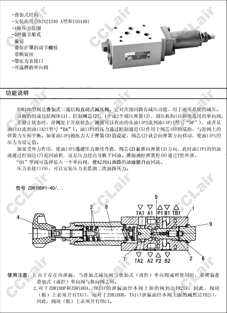 ZDR10DA1-40/2.5Y,ZDR10DB1-40/7.5Y,ZDR10DP1-40/15Y,ZDR10DA2-40/21Y,ZDR10DB3-40/15Y,叠加式减压阀