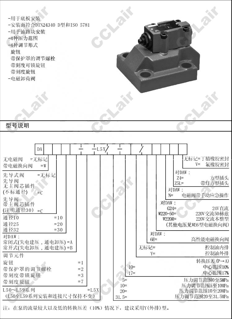 DAWC10A-1-L5X/5,DAC20A-1-L5X,DAW10A-2-L5X,DAC30B-2-L5X,DAWC20A-7-L5X,DAW20B-3-L5X,DAWC30A-3-L5X,先导式卸荷阀