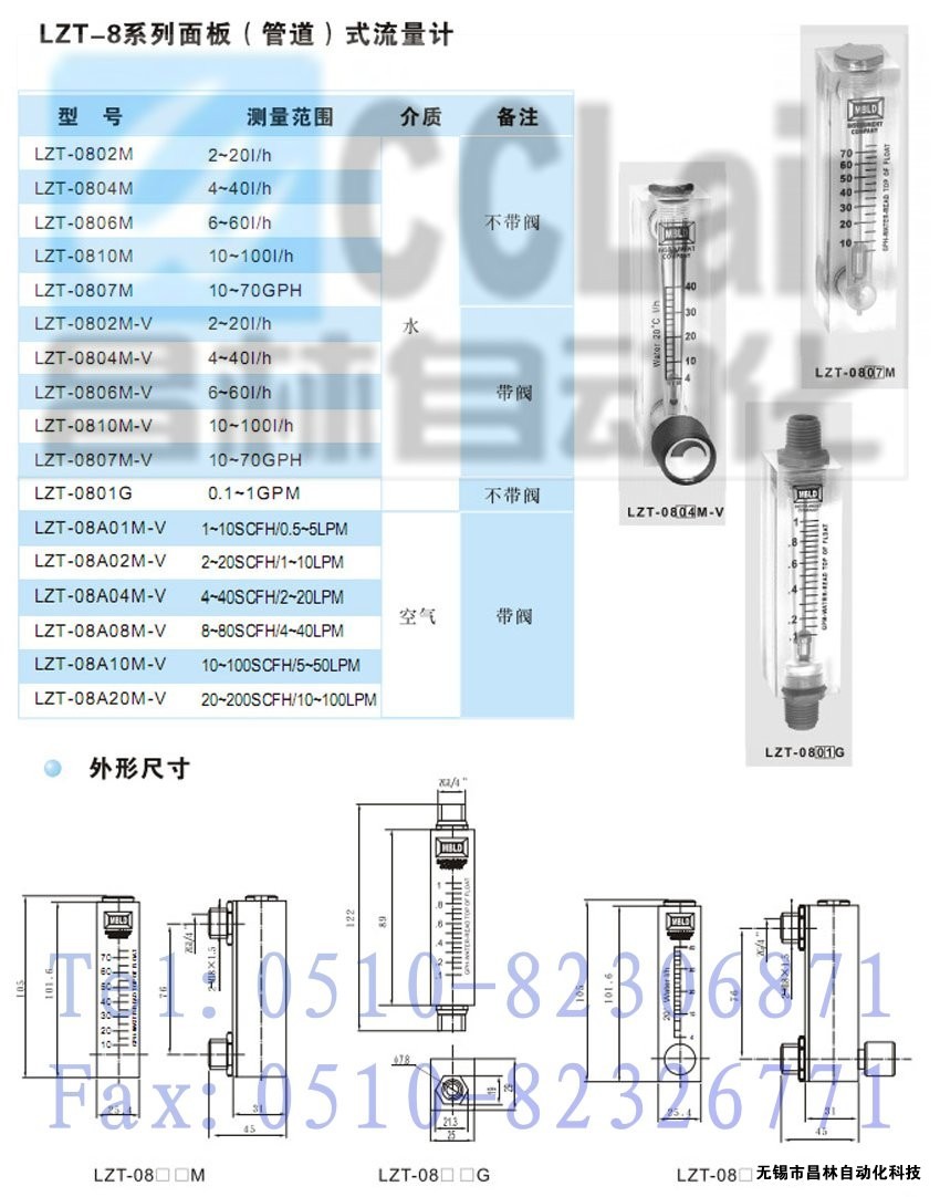 LZT-0802M,LZT-0804M,LZT-0806M面板流量计
