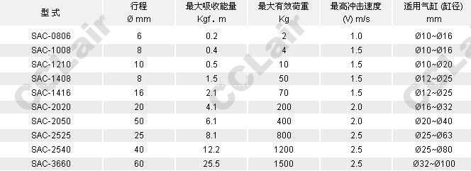 气立可(chelic),SAC-0806,SAC-1008,SAC-1210,SAC-1408,SAC-1416,SAC-2020,SAC-3660,油压缓冲器