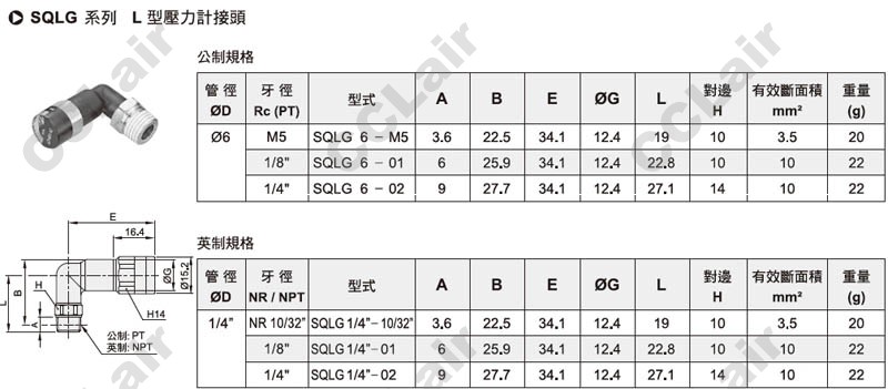 气立可(chelic),SQLG6-M5,SQLG6-01,SQLG6-02,SQLG1/4-10/32,SQLG1/4-01,SQLG1/4-02,压力计接头
