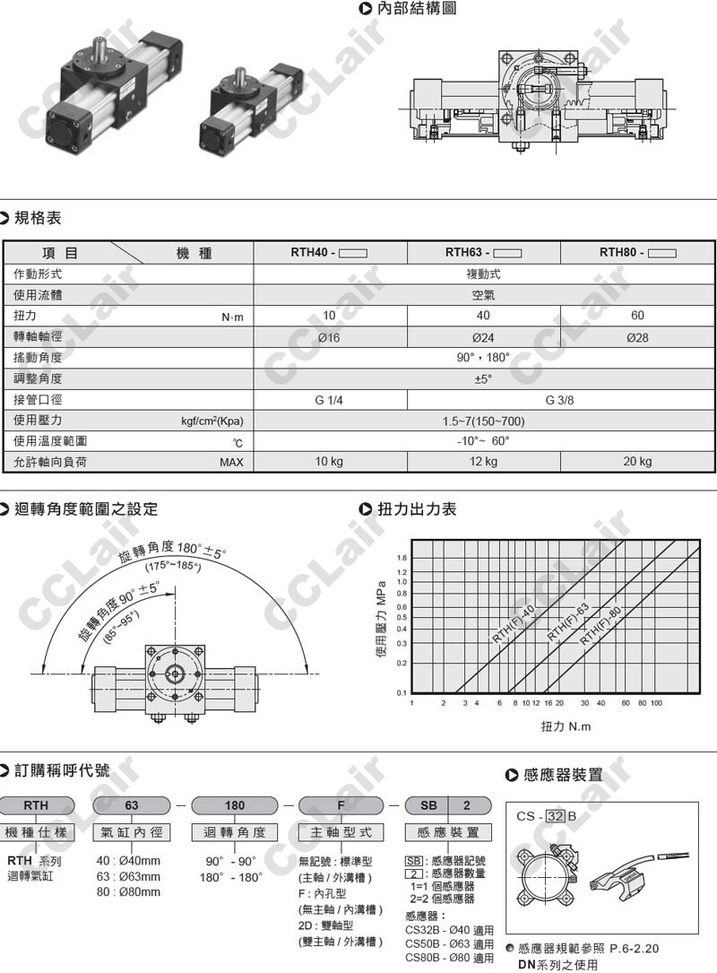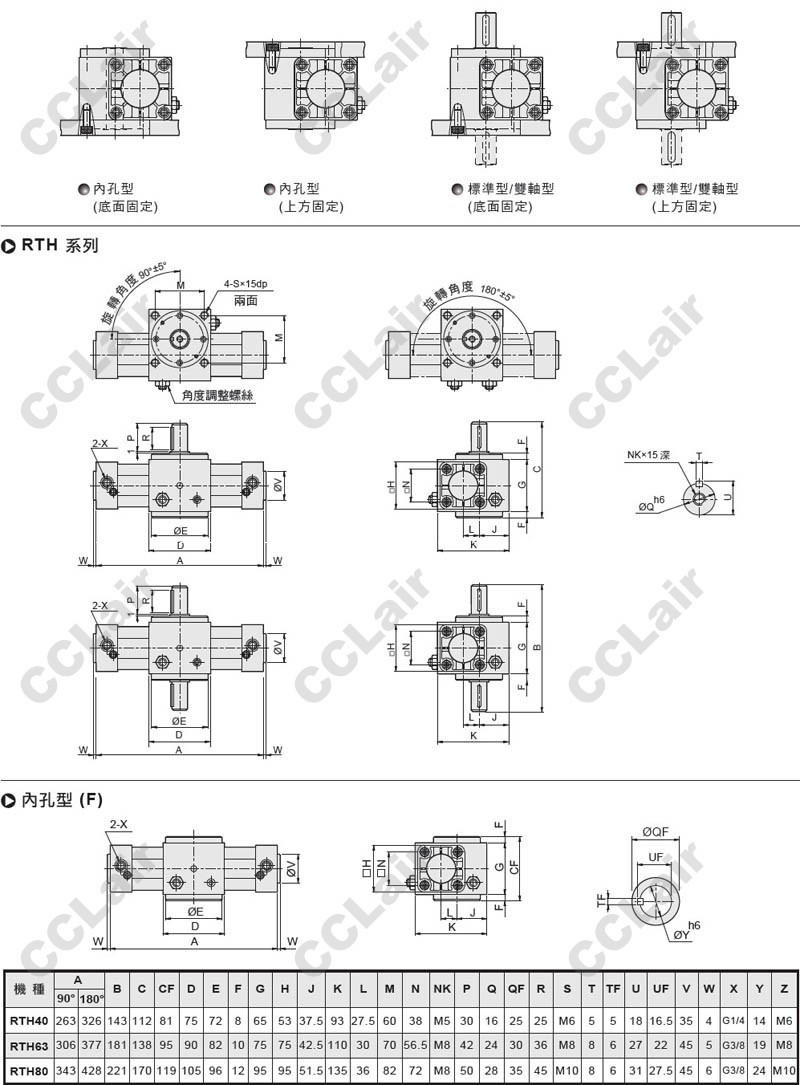气立可(chelic),RTH63-90,RTH63-180,RTH80-90,RTH80-180,RTH40-90-SB2,RTH40-180-F-SB2,回转气缸