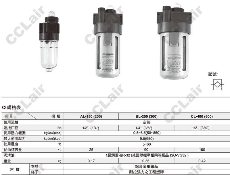 气立可(chelic),AL-150,AL-200,BL-200,BL-300,CL-400,CL-600,AL-150-G-BG-A,给油器