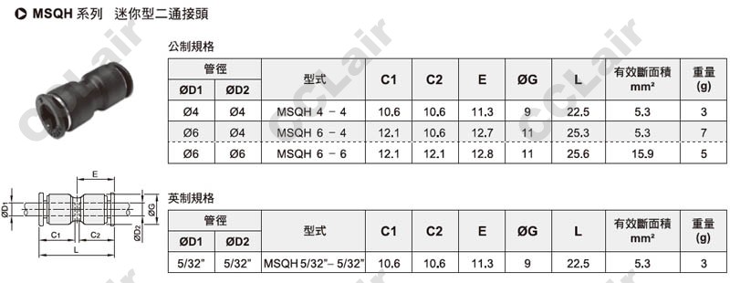 气立可(chelic),MSQH4-4,MSQH6-6,MSQH6-4,MSQH5/32-5/32,迷你型二通接头