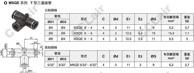 气立可(chelic),MSQE4-4,MSQE6-6,MSQE6-4,MSQE5/32-5/32,T型三通接管