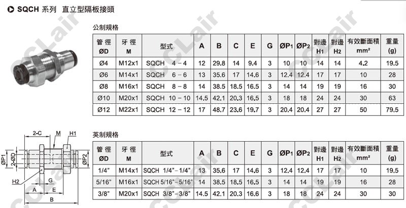 气立可(chelic),SQCH4-4,SQCH10-10,SQCH12-12,SQCH6-6,SQCH8-8,SQCH3/8-3/8,SQCH1/4,SQCH5/16,直立型隔板接头