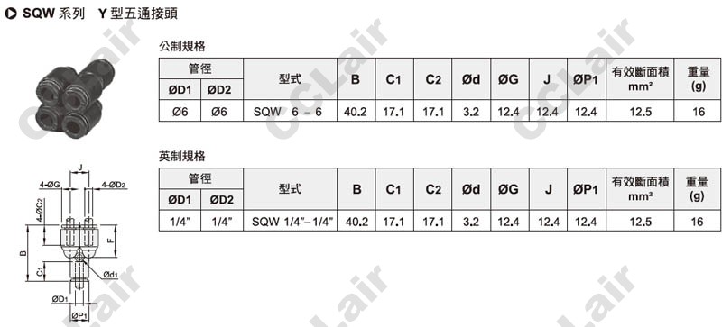 气立可(chelic),SQW6-6,SQW1/4-1/4,Y型五通接头