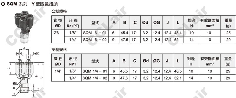 气立可(chelic),SQM6-01,SQM6-02,SQM1/4-01,SQM1/4-02,Y型四通接头