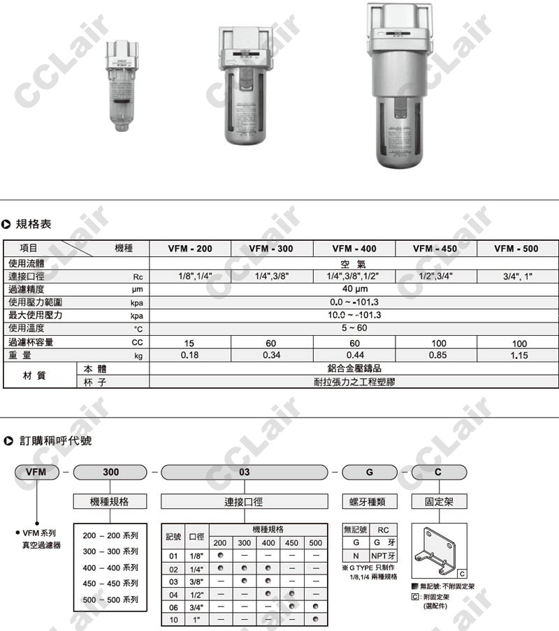 VFM-200-01-G-C,VFM-200-02-G-C,VFM-200-01-N-C,VFM-200-02-N-C,VFM-200-01-C,VFM-200-02-C,真空过滤器