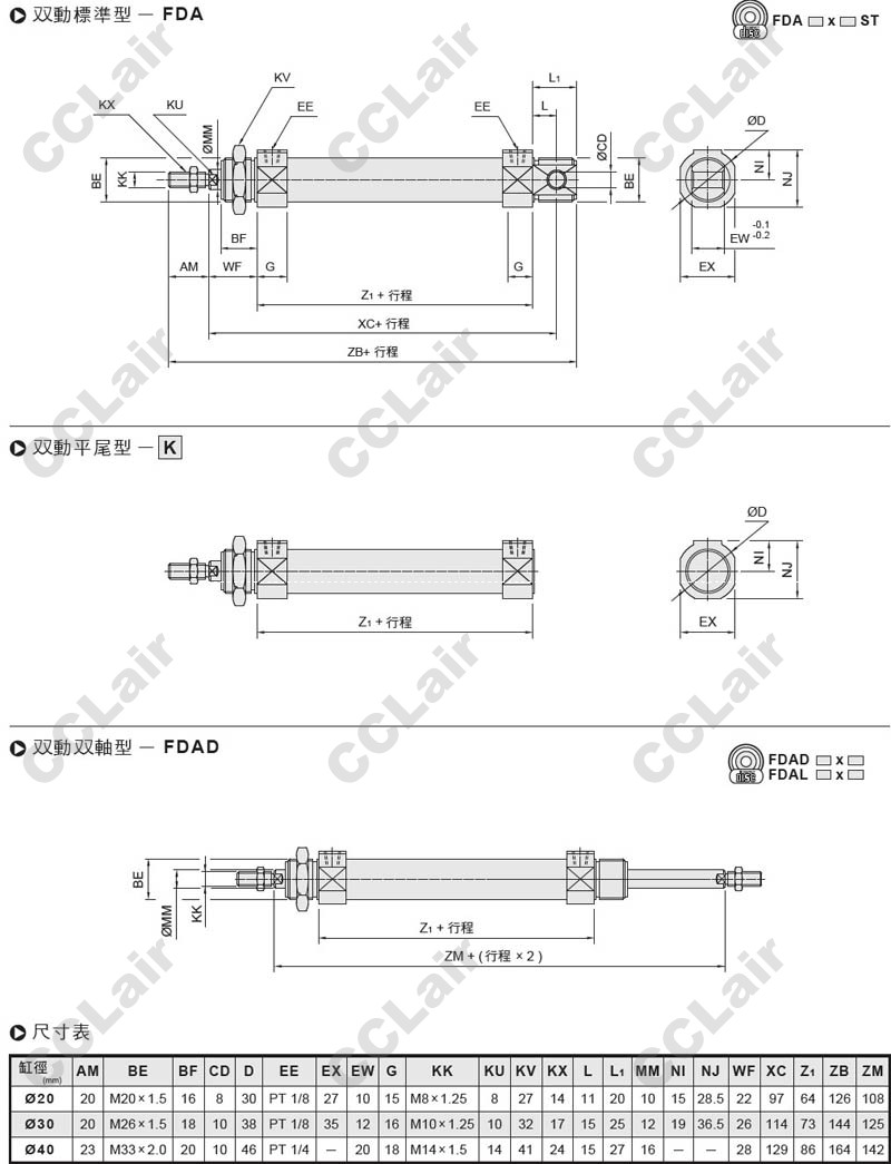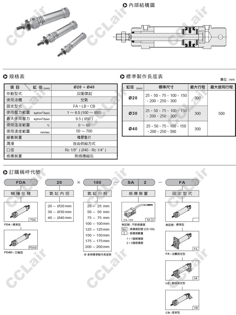 气立可(chelic),FDA20*25,FDA30*50,FDA40*75,FDAD40*100,FDAD20*50,FDAD30*25,不绣钢管气缸