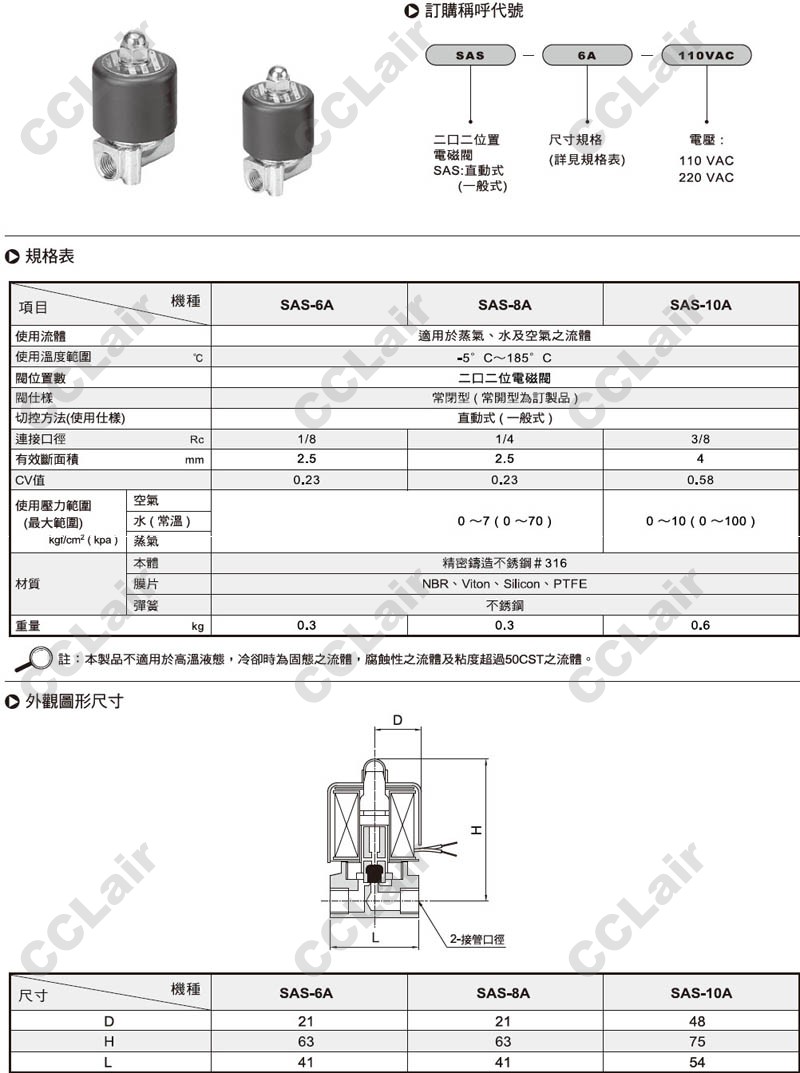 气立可(chelic),SAS-6A-110VAC,SAS-8A-110VAC,SAS-10A-110VAC,SAS-6A-220VAC,电磁阀