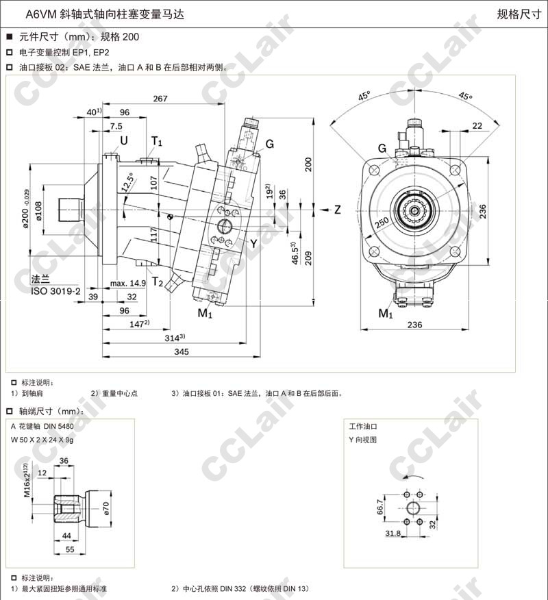 A6VM200,A6VM200HD2D/63W-VAB010,A6VM200HD2D/63W-VAB017,A6VM200EP2D/63W-VAB010,huade斜轴式轴向柱塞变量马达