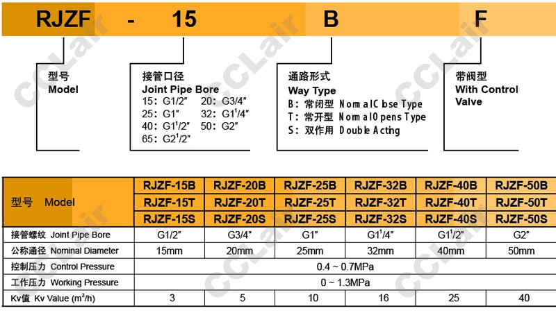 RJZF-15,RJZF-20,RJZF-25,RJZF-32,RJZF-40,RJZF-50,RJZF-20B,RJZF-32T,RJZF-50S,二位二通气控阀
