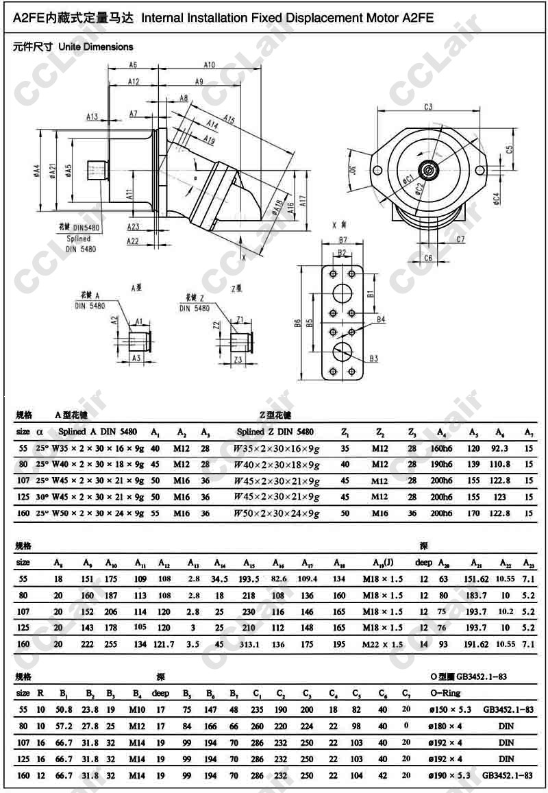 A2FE55,A2FE80,A2FE107,A2FE125,A2FE160,A2FE107W70A11,A2FE160W70A11,huade内藏式定量马达