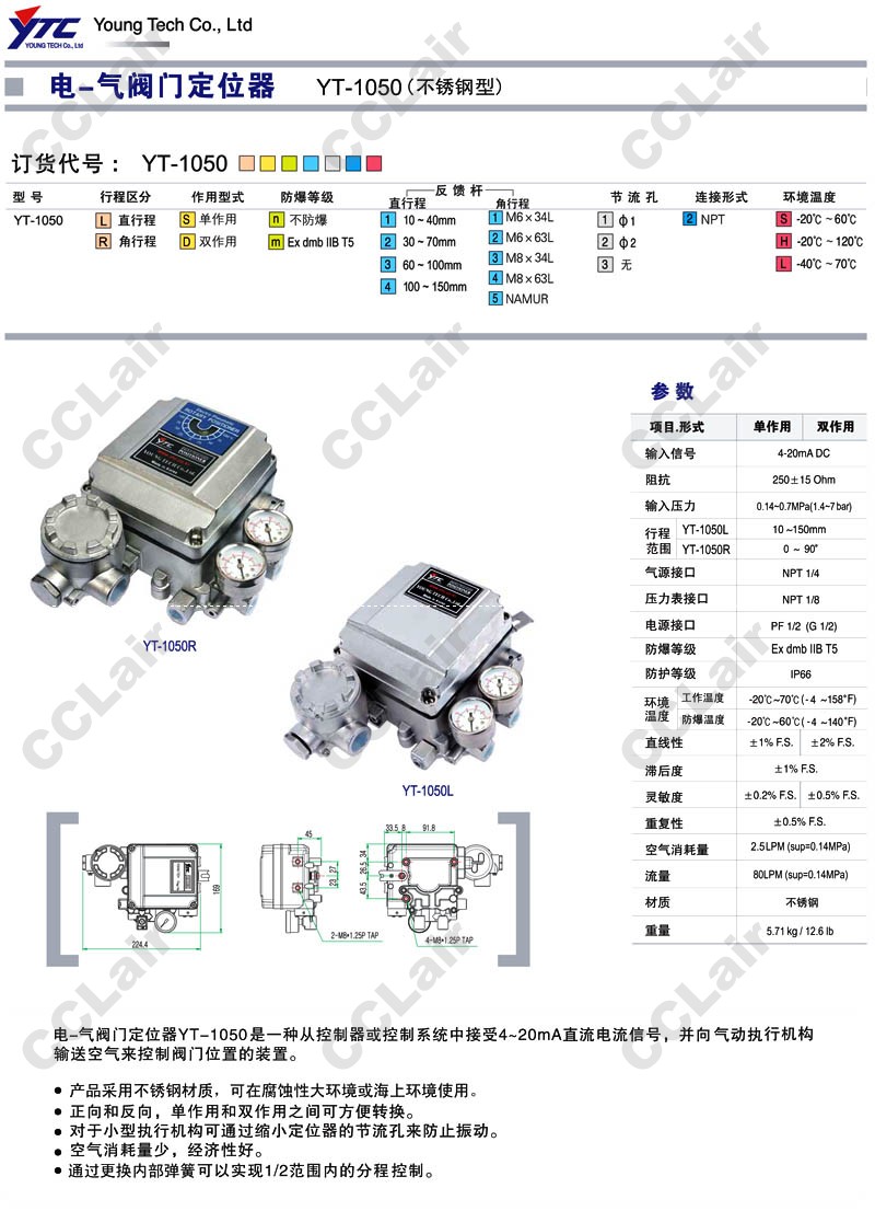 YT-1050R,YT-1050L,YTC电-气阀门定位器