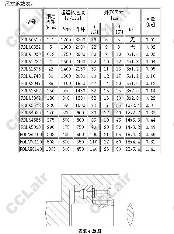 ROLA0619,ROLA0822,ROLA1030,ROLA1232,ROLA1535,ROLA1740,ROLA2047,ROLA2552,ROLA3572,滚柱式单向离合器