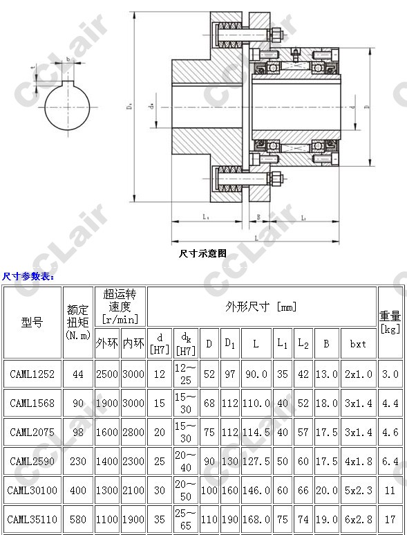 CAML1252,CAML1568,CAML2075,CAML35110,CAML40125,CAML55160,CAML60170,CAML70190,CAML80210,单向超越离合器