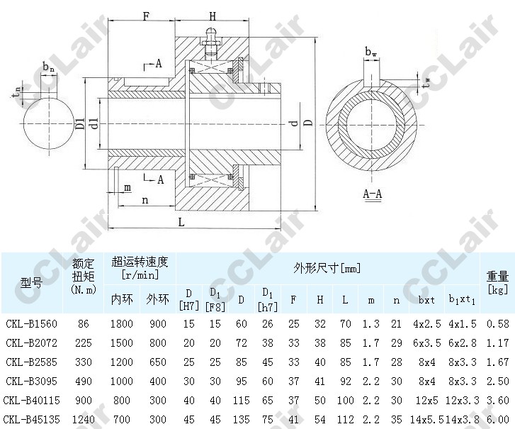 CKL-B1560,CKL-B2072,CKL-B2585,CKL-B3095,CKL-B40115,CKL-B45135,楔块式超越离合器