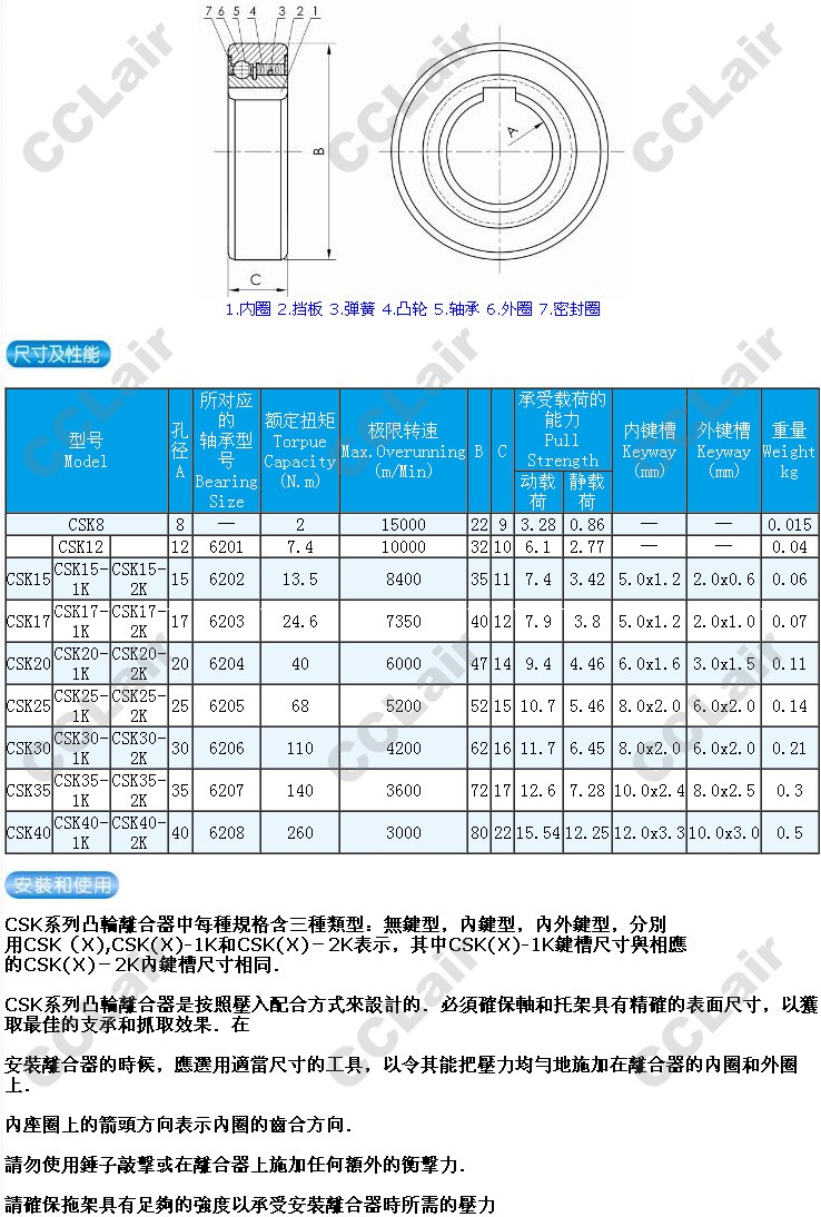 CSK8,CSK12,CSK15,CSK17,CSK20,CSK25,CSK30,CSK35,CSK40,CSK15-1K,CSK17-1K,CSK15-2K,CSK17-2K,凸轮离合器