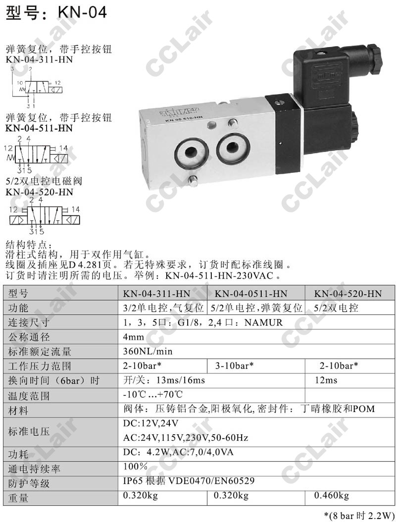 爱尔泰克(airtec),KN-04-311-HN,KN-04-511-HN,KN-04-520-HN,电磁阀