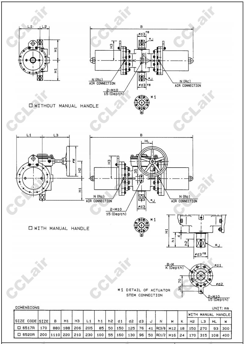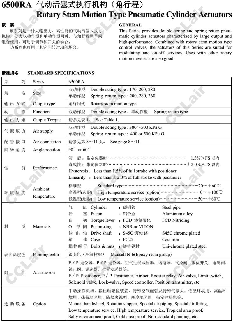 6517RA,6520RA,6528RA,6536RA,气动活塞式执行机构