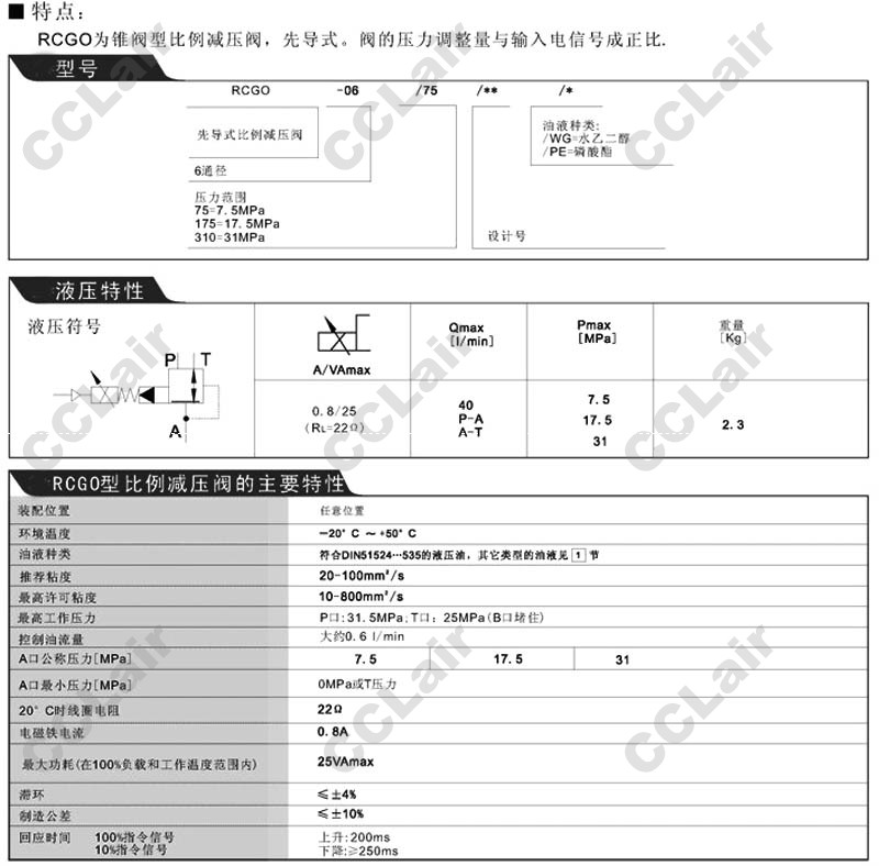 RCGO-06/75,RCGO-06/175,RCGO-06/310,比例减压阀