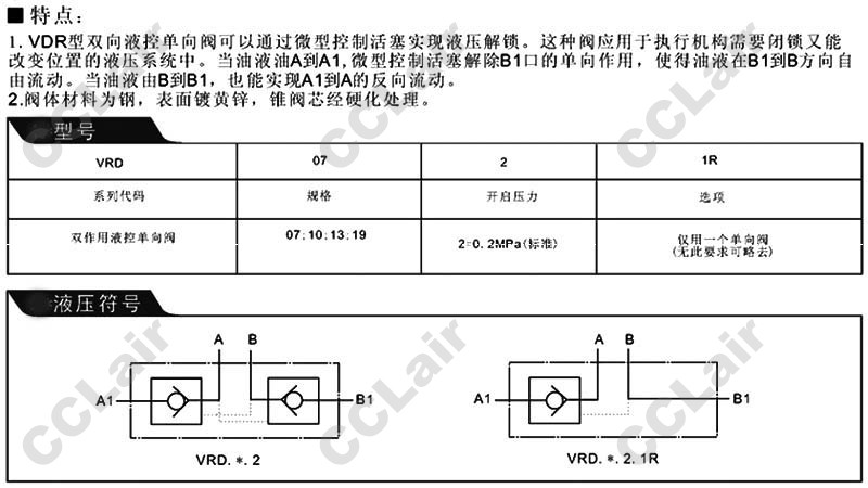 VRD07-2,VRD10-2,VRD13-2,VRD19-2,液控单向阀
