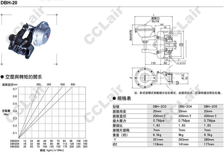 DBH-203,DBH-204,DBH-205,碟式制动器,CCLair