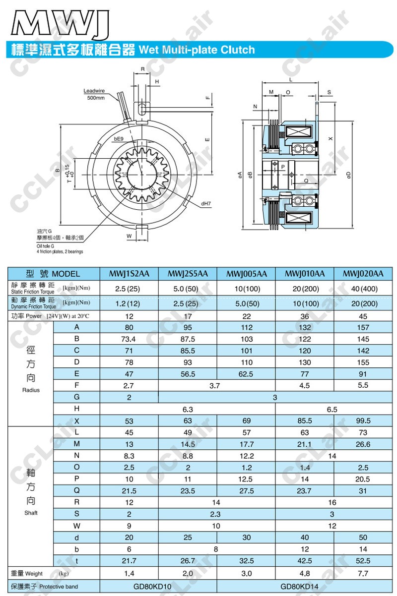 MWJ1S2AA,MWJ2S5AA,MWJ005AA,MWJ010AA,MWJ020AA,湿式多板刹车器,CCLair