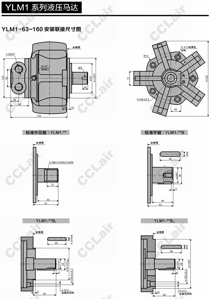 4.液压马达可以任意位置装置,安装马达的支架必须有足够的刚性,安装时应保证马达所联接的传动轴与液压马达的输出轴同轴线。