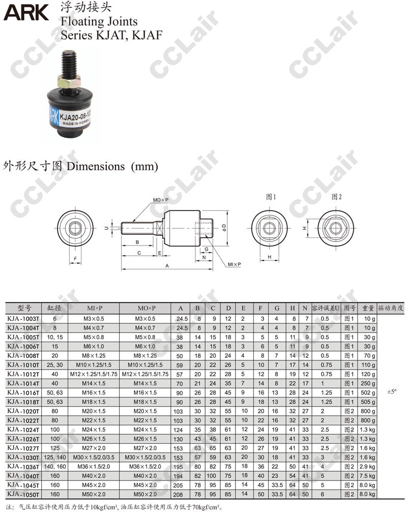 KJA-1003T,KJA-1004T,KJA-1005T,KJA-1006T,KJA-1008T,KJA-1010T,KJA-1012T,KJA-1014T,ARK浮动接头