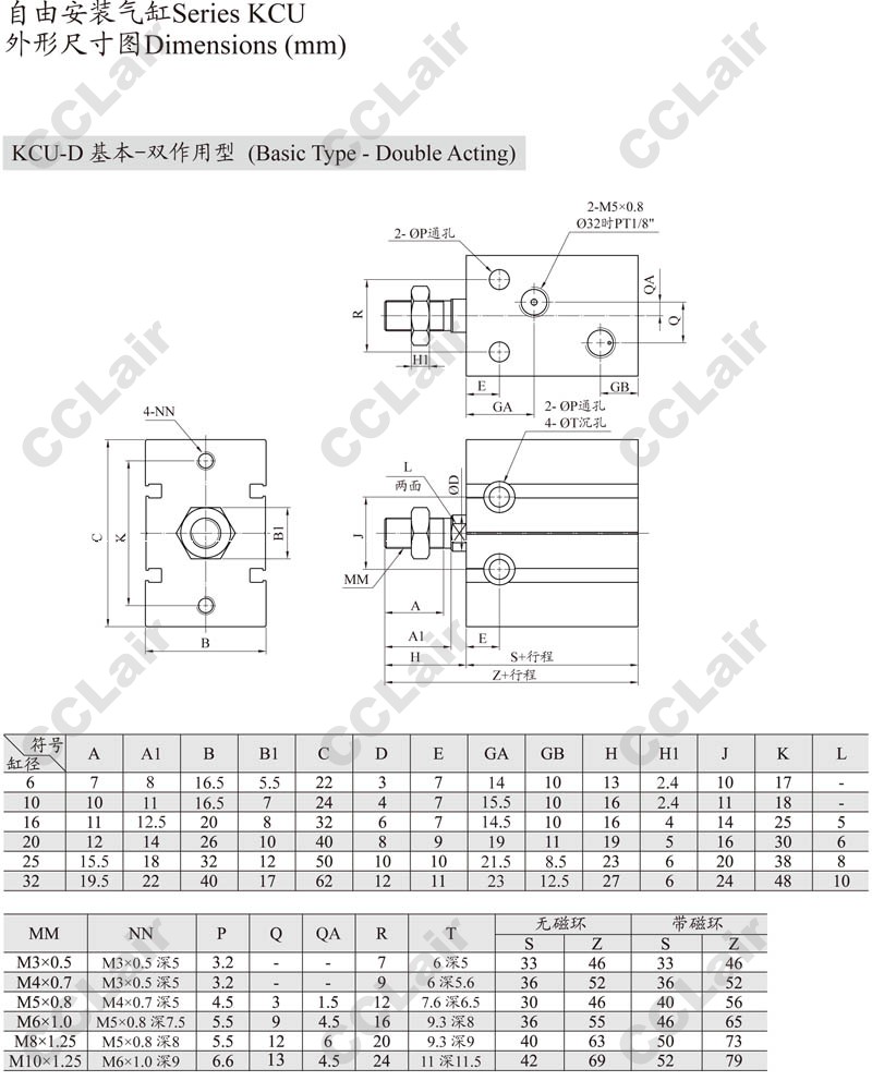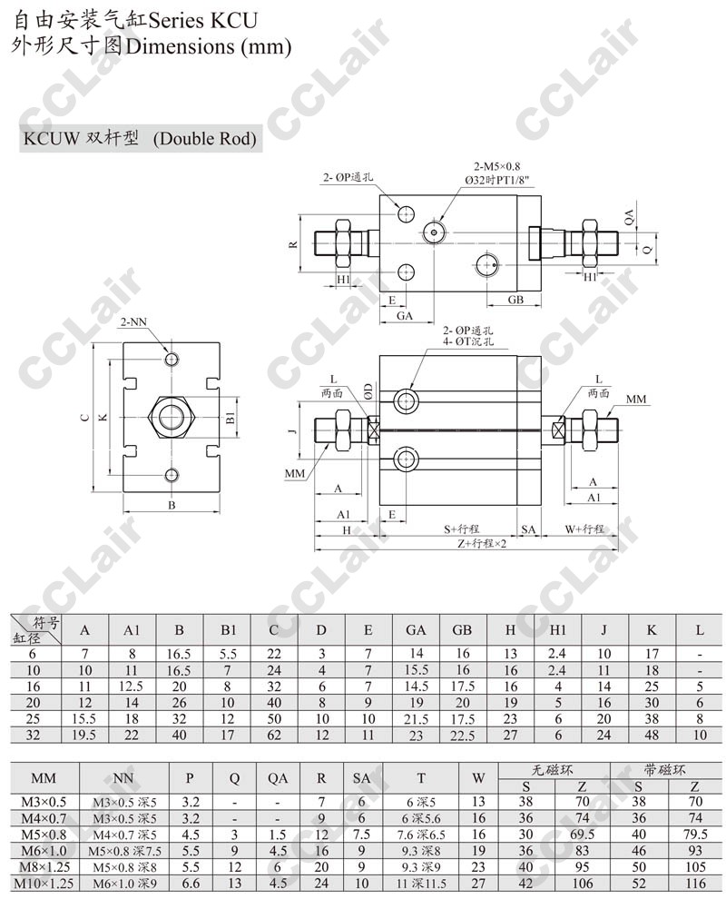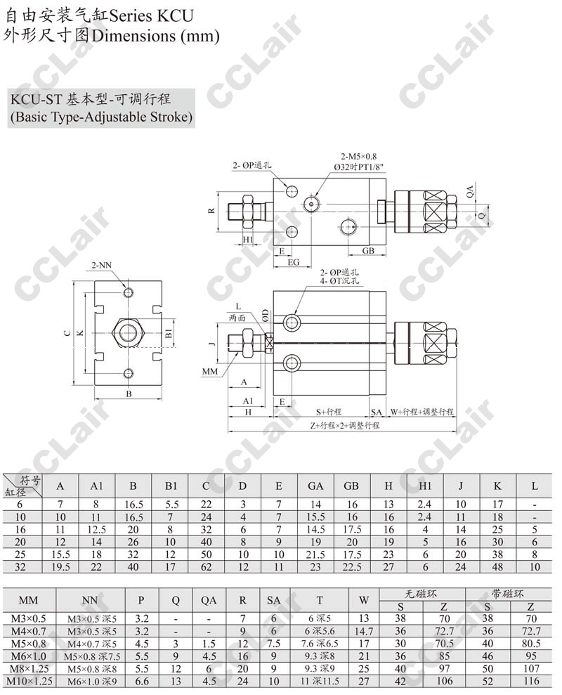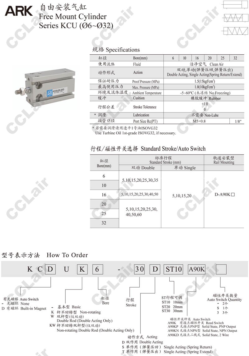 KCUK,KCUW,KCUKW,KCUK20-60,KCUKW16-50,KCUW20-5,KCUKW20-40,KCUW16-10,ARK自由安装气缸