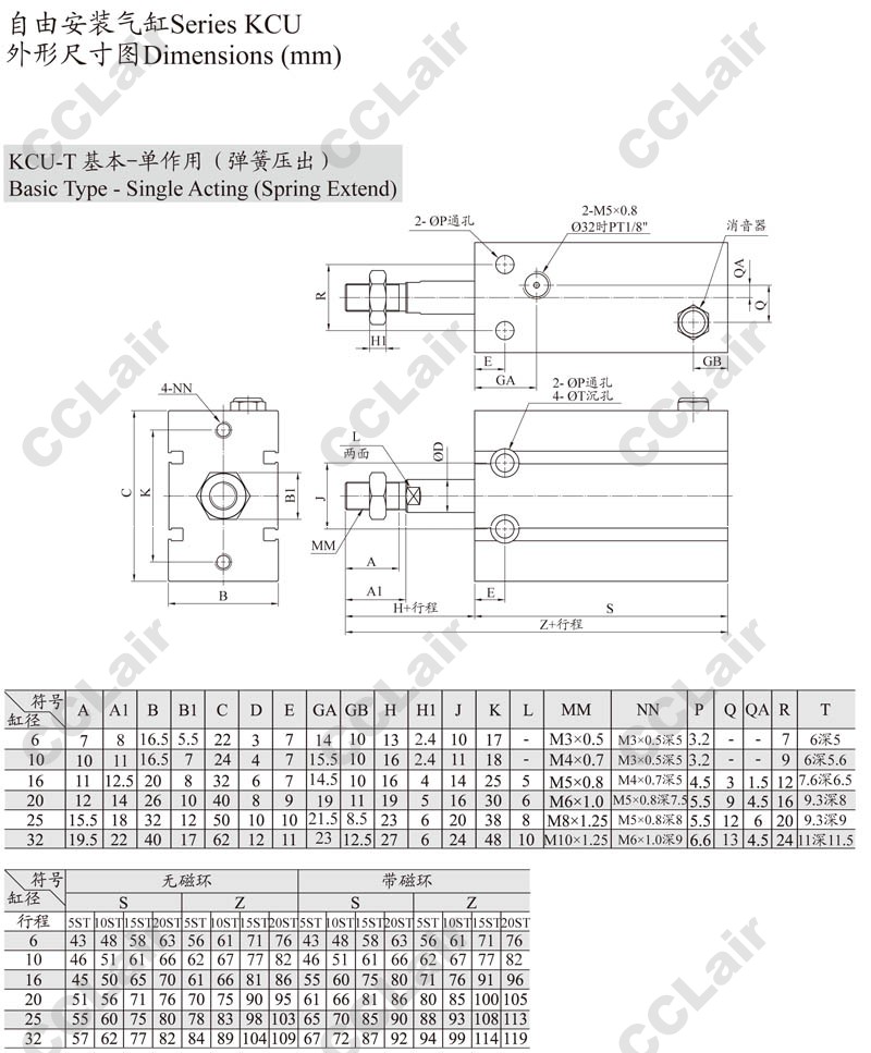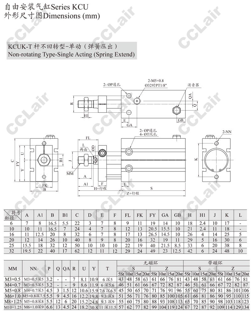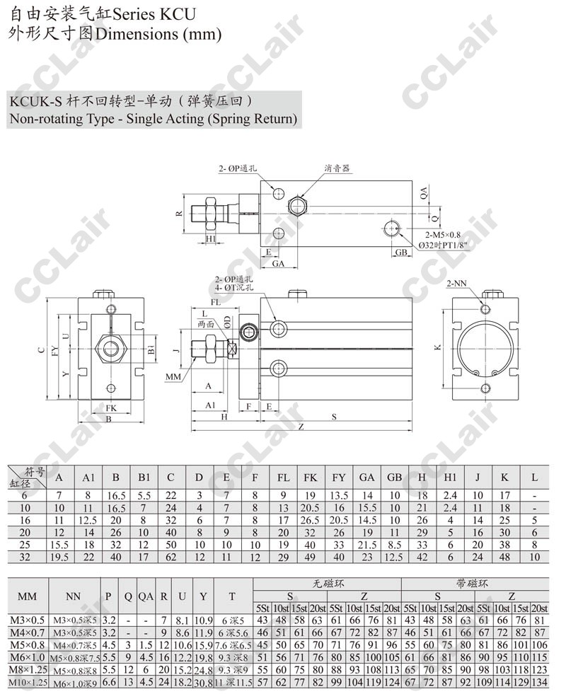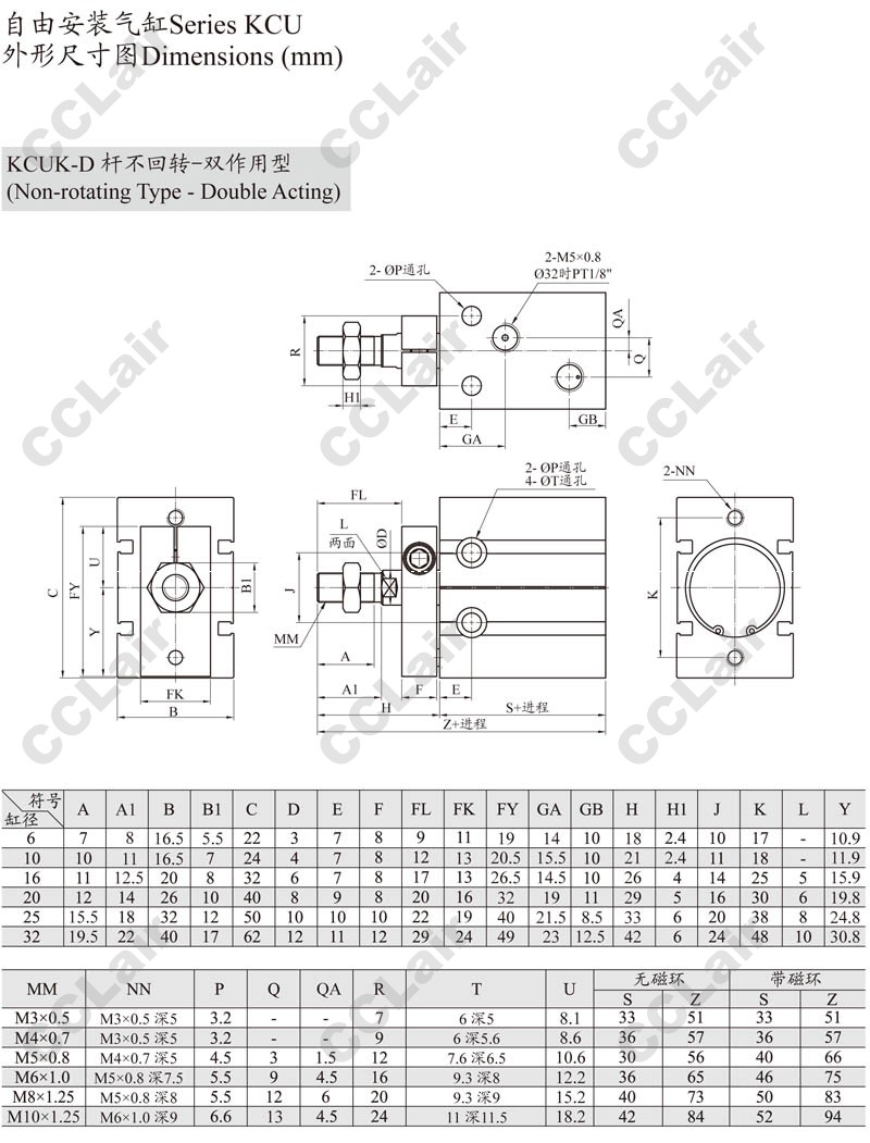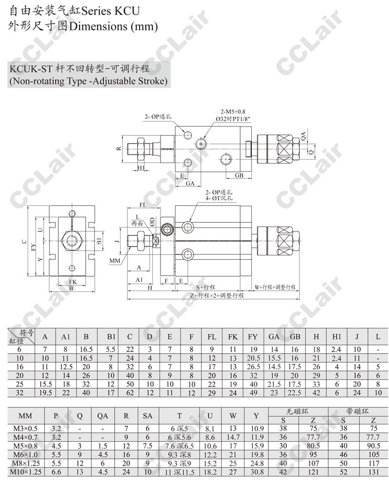 KCUK,KCUW,KCUKW,KCUK20-60,KCUKW16-50,KCUW20-5,KCUKW20-40,KCUW16-10,ARK自由安装气缸