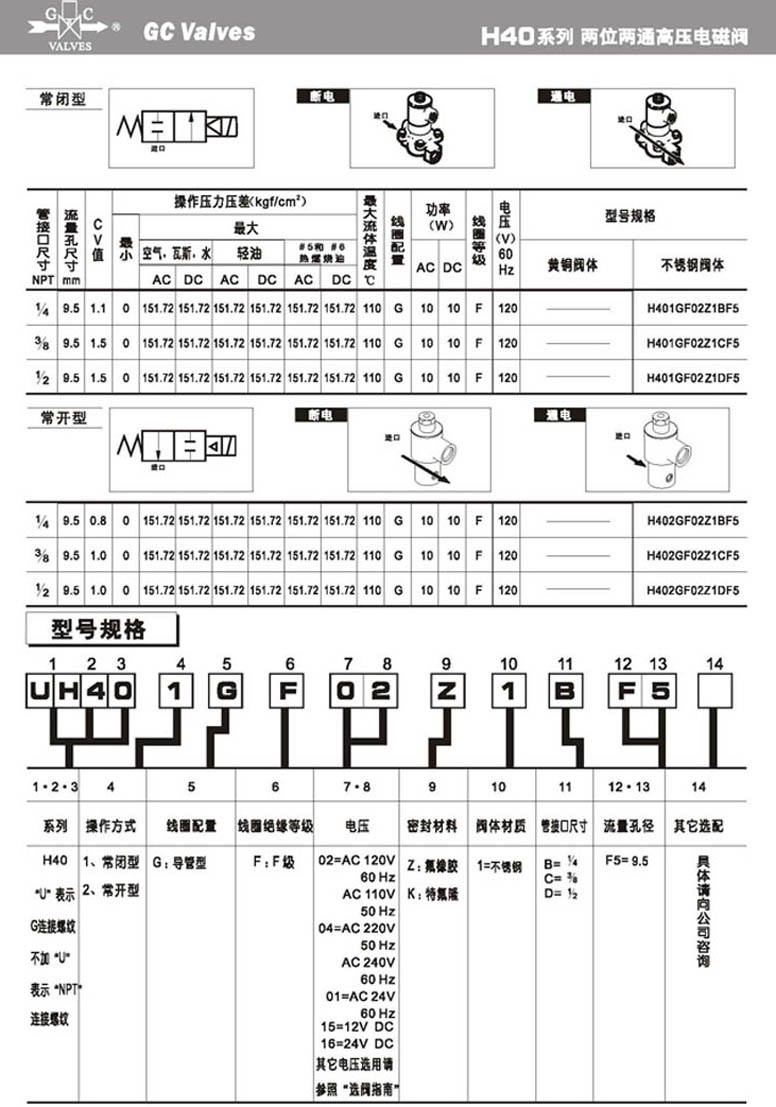 H401GF02Z1BF5,H401GF02Z1CF5,H401GF02Z1DF5,H402GF02Z1BF5,H402GF02Z1CF5,H402GF02Z1DF5,GC Valves二拉二通高压电 |