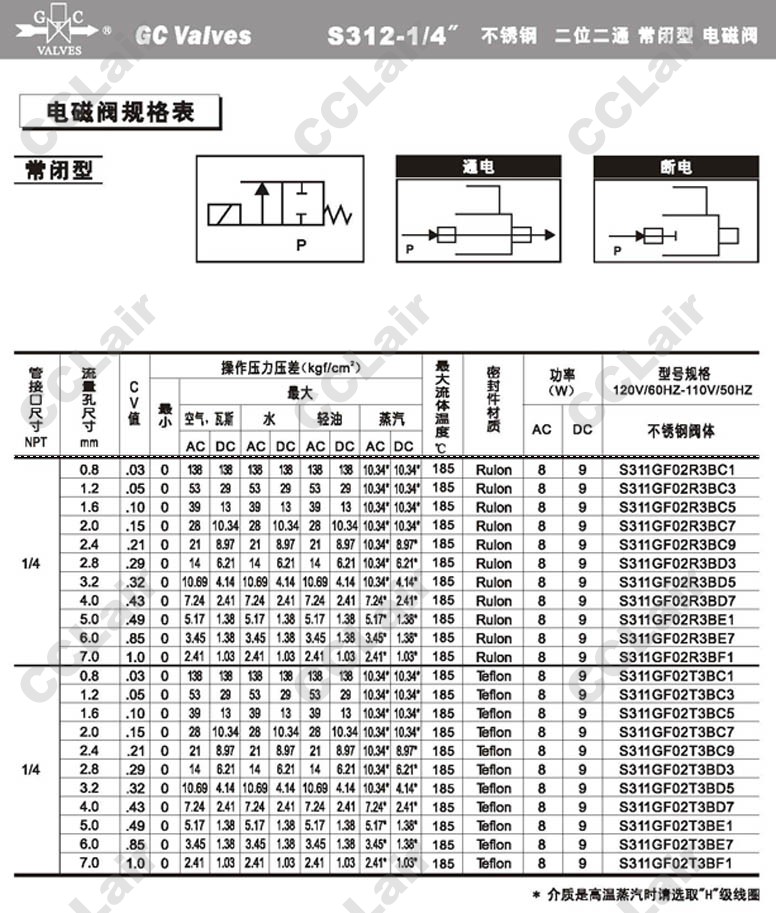 S312GF02V8AC9,S312GF02V8AD3,S312GF02V8AD5,S312GF02V8AD7,GC Valves S312GF02V8AE1,S312GF02R8AC1,